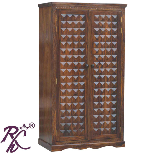 The Solid Sheesham wood diamond design 2 doors cabinet and Wardrobe. This wooden Cabinet & Wardrobe is made up of Sheesham wood so that the life of the furniture stays for long. It is termite-proof and polished with melamine. There are more finishes of it walnut, honey, natural, and many more to choose from. You can use this cabinet & wardrobe for a bedroom, office, hall, and any other area where you want to store your things. This Wooden Cabinet & Wardrobe will add warmth and going to be a worthy winner in your home. It’s a perfect fit for almost any type of interior and makes your house elegant. This cabinet and wardrobe have two Doors. Which is enough storage to store your things. So now this cabinet is available at a very effective price.