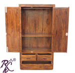 The Wooden 2 Doors 3 Drawers Cabinet & Wardrobe. This wooden Cabinet & Wardrobe is made up of Sheesham wood so that the life of the furniture stays for long. It is termite-proof and polished with melamine. There are more finishes of it walnut, honey, natural, and many more to choose from. You can use this cabinet & wardrobe for a bedroom, office, hall, and any other area where you want to store your things. This Wooden Cabinet & Wardrobe will add warmth and going to be a worthy winner in your home. It’s a perfect fit for almost any type of interior and makes your house elegant. This cabinet and wardrobe have two Doors and three drawers. Which is enough storage to store your things. So now this cabinet is available at a very effective price.