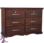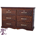 The Solid Wood Jiksa Jali 6 Drawer Chest. This Chest of the drawer is made up of Sheesham wood so that the life of the furniture stays for long. It is termite-proof and polished with melamine. There are more finishes of it Walnut, Honey, Natural, and many more to choose from. The Brass Bakhra Chest of Drawer has 4 drawers and 1 Door with an antique design. You can use this chest of drawer for Bedroom, hall, outside area and other. So, now this chest of drawers is available at a very effective price.