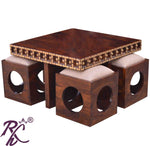 Trendy L+T Design Center Table Sq. 4 Pcs Stool Set Wooden Top