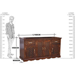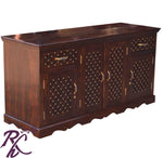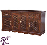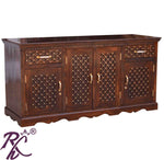 The Solid Wood Jiksa Jali Sideboard of 4 doors and 2 drawers. This wooden Sideboard is made up of Sheesham wood so that the life of the furniture stays for long. It is termite-proof and polished with melamine. There are more finishes of Walnut, Honey, and Natural as well to choose from. You can use this sideboard and storage for a Dining room and any room in your home. this Wooden Solid Wood Sideboard Cabinet will add warmth and going to be a worthy winner in your home. it’s a perfect fit for almost any type of interior. make you feel comfortable. this beautiful sideboard makes your house become elegant. the gives you ample storage space. two drawers and four doors, Now available at a very effective price.