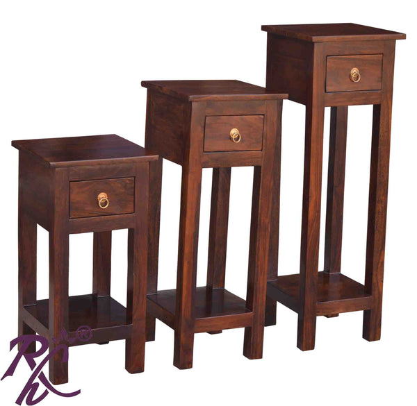 The Solid Sheesham wood corner telephone stand is medium with one drawer. This corner telephone stand is made up of Sheesham wood so that the life of the furniture stays for long. It is termite-proof and polished with melamine. There are more finishes of it walnut, honey, natural, and many more to choose from. You can use this shelf for a corner table, a corner shelf, lamp stand, pot stand, telephone stand, and Bouquet Stand. So, this corner unit is available now at a very effective price.