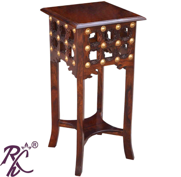 The Solid Sheesham wood Side table. This side table is made up of Sheesham wood so that the life of the furniture stays for long. It is termite-proof and polished with melamine. There are more finishes of it walnut, honey, natural, and many more to choose from. You can use this shelf for a corner table, a corner shelf, lamp stand, pot stand, telephone stand, and Bouquet Stand. So, this corner unit is available now at a very effective price.