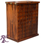 The Solid Wood Diamond Door Design Bar Cabinet. This Bar cabinet is made up of Sheesham wood so that the life of the furniture stays for long. It is termite-proof and polished with melamine. There are more finishes of it Walnut, Honey, Natural, and many more to choose from. This Bar Counter is complete storage for beer bottles, wine bottles, bar mugs, and beautiful wine glass and gives a complete display of your bar products and bar crockery. This Wooden Bar Cabinet will add warmth and going to be a worthy winner in your home, office. It’s a perfect fit for almost any type of interior and makes your house, office elegant. Which is enough storage to store your things. So now this cabinet is available at a very effective price.