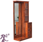 The Solid Wooden Diamond Door Design Dresser With Stool. This wooden Dresser is made up of Sheesham wood so that the life of the furniture stays for long. It is termite-proof and polished with melamine. There are more finishes Walnut, Honey, and Natural as well to choose from. You can use this Dresser for a Bed Room and This Vanity Table Provides Ample Storage Space for Cosmetics, Jewellery, Accessories, and Small Items. The Top Design of This Wooden Dresser Also Gives It New Look. Elegant carvings beautify the top drawer and the arc above the mirror. A Standard-sized mirror graces the main front face of the dressing unit, with beautifully carved curvatures that complete forming an arc. bringing the total to one glass door and one wooden diamond design door make it great to keep all your cosmetics. Made with premium quality Sheesham wood for added strength and durability. this Wooden Solid Wood Dresser will add warmth and going to be a worthy winner in your Bed Room. it’s a perfect fit for almost any type of interior. make you feel comfortable. this beautiful dresser makes your house become elegant. the gives you ample storage space. Now available at a very effective price.