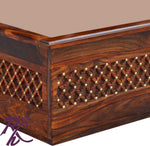 The Solid Sheesham Wood Jiksa Jali Single Deewan Bed. This wooden Jiksa Jali Single Deewan Bed is made up of Sheesham wood so that the life of the furniture stays for long. It is termite-proof and polished with melamine. There are more finishes Walnut, Honey, and Natural as well to choose from. You can use this Deewan Bed with for Bed Room. The Top Design of This Wooden Bed Also Gives It New Look. Made with premium quality Sheesham wood. this Wooden Solid Wooden Bed will add warmth and going to be a worthy winner in your Bed Room. it’s a perfect fit for almost any type of interior. make you feel comfortable. this beautiful Bed with makes your house become elegant. Now available at a very effective price. We deliver only during office time and working days. other items shown with this product are only for photo-shoot and not for sale.