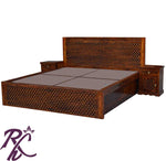Solid Wood Jiksa Jali Design King Size With Storage Bed