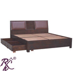 Solid Wood King Size Bed With Side Full Trolley Storage