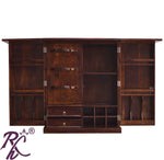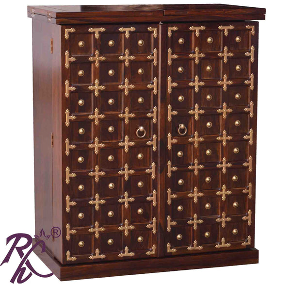 The Solid Wood Brass Work L+T Door Design Bar Cabinet. This Bar cabinet is made up of Sheesham wood so that the life of the furniture stays for long. It is termite-proof and polished with melamine. There are more finishes of it Walnut, Honey, Natural, and many more to choose from. This Bar Counter is complete storage for beer bottles, wine bottles, bar mugs, and beautiful wine glass and gives a complete display of your bar products and bar crockery. This Wooden Bar Cabinet will add warmth and going to be a worthy winner in your home, office. It’s a perfect fit for almost any type of interior and makes your house, office elegant. Which is enough storage to store your things. So now this cabinet is available at a very effective price.
