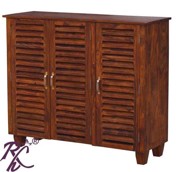 The Solid Sheesham wood Shoe rack. This wooden Shoe rack is made up of Sheesham wood so that the life of the furniture stays for long. It is termite-proof and polished with melamine. There are more finishes Walnut, Honey, and Natural as well to choose from. You can use this shoe rack in your home. this Wooden Solid Wood shoe rack Cabinet will add warmth and going to be a worthy winner in your home. it’s a perfect fit for almost any type of interior. make you feel comfortable. this beautiful shoe rack makes your house become elegant. Shoe haven. The Bennis is a sleek, multi-shelved cabinet with adequate space for your everyday and occasional footwear. three doors Now available at a very effective price.