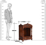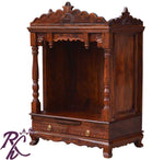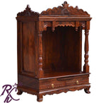 The Solid Sheesham wood carving temple. This wooden temple is made up of Sheesham wood so that the life of the furniture stays for long. It is termite-proof and polished with melamine. There are more finishes of Walnut, Honey, and Natural as well to choose from. You can use this temple for a god prayer room in your home, shop and office. make you feel comfortable. this beautiful temple makes your house become elegant. This wooden carving temple with two drawer, one lamp tray Now available at a very effective price.