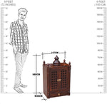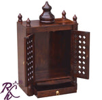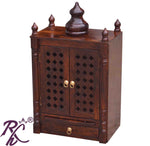 The Solid Sheesham wood wooden jali Temple. This wooden temple is made up of Sheesham wood so that the life of the furniture stays for long. It is termite-proof and polished with melamine. There are more finishes of Walnut, Honey, and Natural as well to choose from. You can use this temple for a god prayer room in your home, shop, and office. make you feel comfortable. this beautiful temple makes your house become elegant. This wooden jali temple with one drawer, one lamp tray, and two doors, Now available at a very effective price.