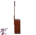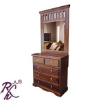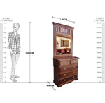 The Solid Wood 5 Drawer Dresser With Stool. is made up of Sheesham wood so that the life of the furniture stays for long. It is termite-proof and polished with melamine. There are more finishes Walnut, Honey, and Natural as well to choose from. You can use this Dresser for a Bed Room and This Vanity Table Provides Ample Storage Space for Cosmetics, Jewelry, Accessories, and Small Items. The Top Design of This Wooden Dresser Also, Give It New Look. Elegant carvings beautify the top drawer and the arc above the mirror. A Standard-sized mirror graces the main front face of the dressing unit, with beautifully carved curvatures that complete forming an arc. bringing the total to one Mirror glass and five wooden drawers make it great to keep all your cosmetics. Made with premium quality Sheesham wood for added strength and durability. this Wooden Solid Wood Dresser will add warmth and going to be a worthy winner in your Bed Room. it’s a perfect fit for almost any type of interior. make you feel comfortable. this beautiful dresser makes your house become elegant. the gives you ample storage space. Now available at a very effective price.