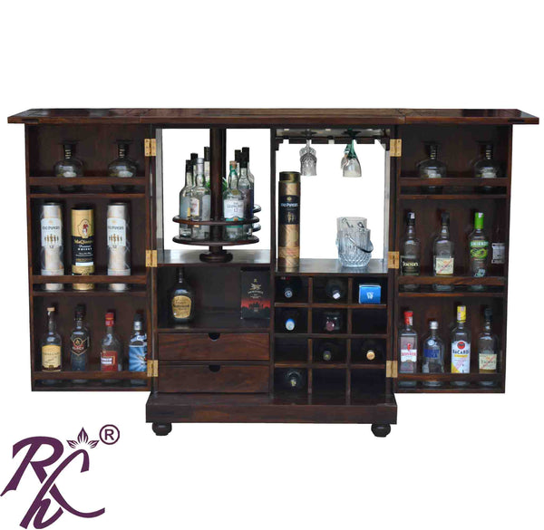 The solid Sheesham wooden Bar cabinet. This Bar cabinet is made up of Sheesham wood so that the life of the furniture stays for long. It is termite-proof and polished with melamine. There are more finishes of it Walnut, Honey, Natural, and many more to choose from. This Bar Counter is complete storage for beer bottles, wine bottles, bar mugs, and beautiful wine glass and gives a complete display of your bar products and bar crockery. This Wooden Bar Cabinet will add warmth and going to be a worthy winner in your home, office. It’s a perfect fit for almost any type of interior and makes your house, office elegant. Which is enough storage to store your things. So now this cabinet is available at a very effective price.