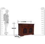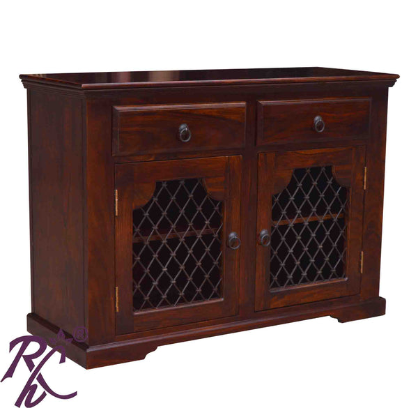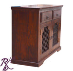 The Solid Wood Iron Jali Sideboard 2 Drawers 2 iron jali Doors. This wooden Sideboard is made up of Sheesham wood so that the life of the furniture stays for long. It is termite-proof and polished with melamine. There are more finishes of Walnut, Honey, and Natural as well to choose from. You can use this sideboard and storage for a Dining room and any room in your home. this Wooden Solid Wood Sideboard Cabinet will add warmth and going to be a worthy winner in your home. it’s a perfect fit for almost any type of interior. make you feel comfortable. this beautiful sideboard makes your house become elegant. the gives you ample storage space. Two drawers, two iron jali doors, Now available at a very effective price.