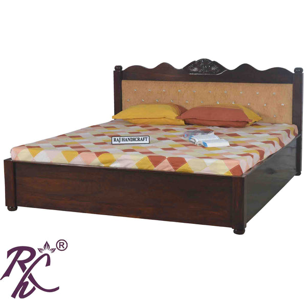 The Solid Wooden Bed with back cushion. This wooden bed with a back cushion is made up of Sheesham wood so that the life of the furniture stays for long....