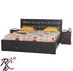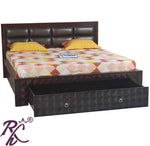 Solid Wood King Size Bed With Front Drawer and Head Part With Cushion Work