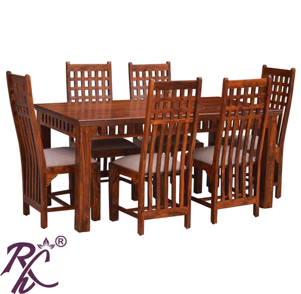 The Solid Wood Kubera Design Dining Set ( 6 Seater ). This wooden Dining table and chairs are made up of Sheesham wood so that the life of the furniture...