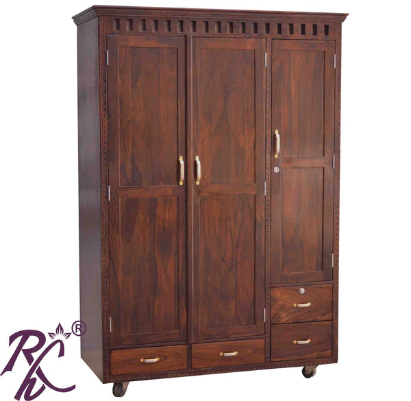 The Solid Sheesham wood Cabinet & Wardrobe. This wooden Cabinet & Wardrobe is made up of Sheesham wood so that the life of the furniture stays for long. It is termite-proof and polished with melamine. There are more finishes Walnut, Honey, and Natural as well to choose from. You can use this wood Cabinet & Wardrobe and storage for a Bed Room in your home. This Wooden Solid Wood Cabinet & Wardrobe will add warmth and going to be a worthy winner in your home. it’s a perfect fit for almost any type of interior. This beautiful Cabinet & Wardrobe makes your house elegant and makes you feel comfortable. This cabinet has three Doors and Six drawers. Which is enough storage to store your things. So now this cabinet is available at a very effective price.