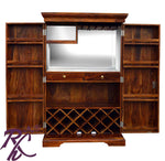 The solid Sheesham wooden Bar cabinet. This Bar cabinet is made up of Sheesham wood so that the life of the furniture stays for long. It is termite-proof and polished with melamine. There are more finishes of it Walnut, Honey, Natural, and many more to choose from. This Bar Counter is complete storage for beer bottles, wine bottles, bar mugs, and beautiful wine glass and gives a complete display of your bar products and bar crockery. This Wooden Bar Cabinet will add warmth and going to be a worthy winner in your home, office. It’s a perfect fit for almost any type of interior and makes your house, office elegant. Which is enough storage to store your things. So now this cabinet is available at a very effective price.